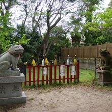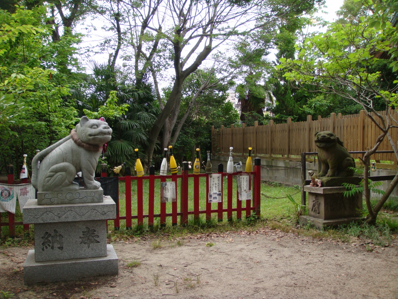 境内には「狛虎」があって、タイガースのメガホンなどが供えてありました。
