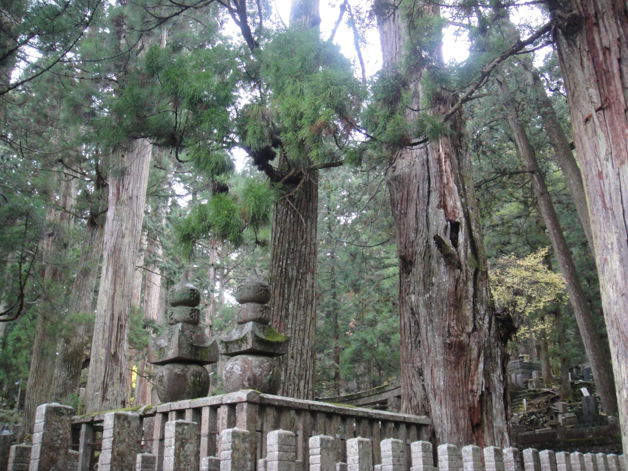 高野山に行きました。なんばから南海電鉄で極楽橋、そしてケーブルカーで高野山へ。そこからはバスで一挙に奥の院まで。順序的には大門や金剛峰寺からなのでしょうが、バスが奥の院行きだったので最初に回りました。観光コース的には奥の院から金剛峰寺などへは下りなので、歩く場合は楽かもしれません。奥の院の一部エリアは撮影禁止です。また途中の石畳の道には有名な戦国大名、江戸時代の大名の墓が並んでいました。なんか墓参りに来た感じです。だけどさすが立派な墓です。