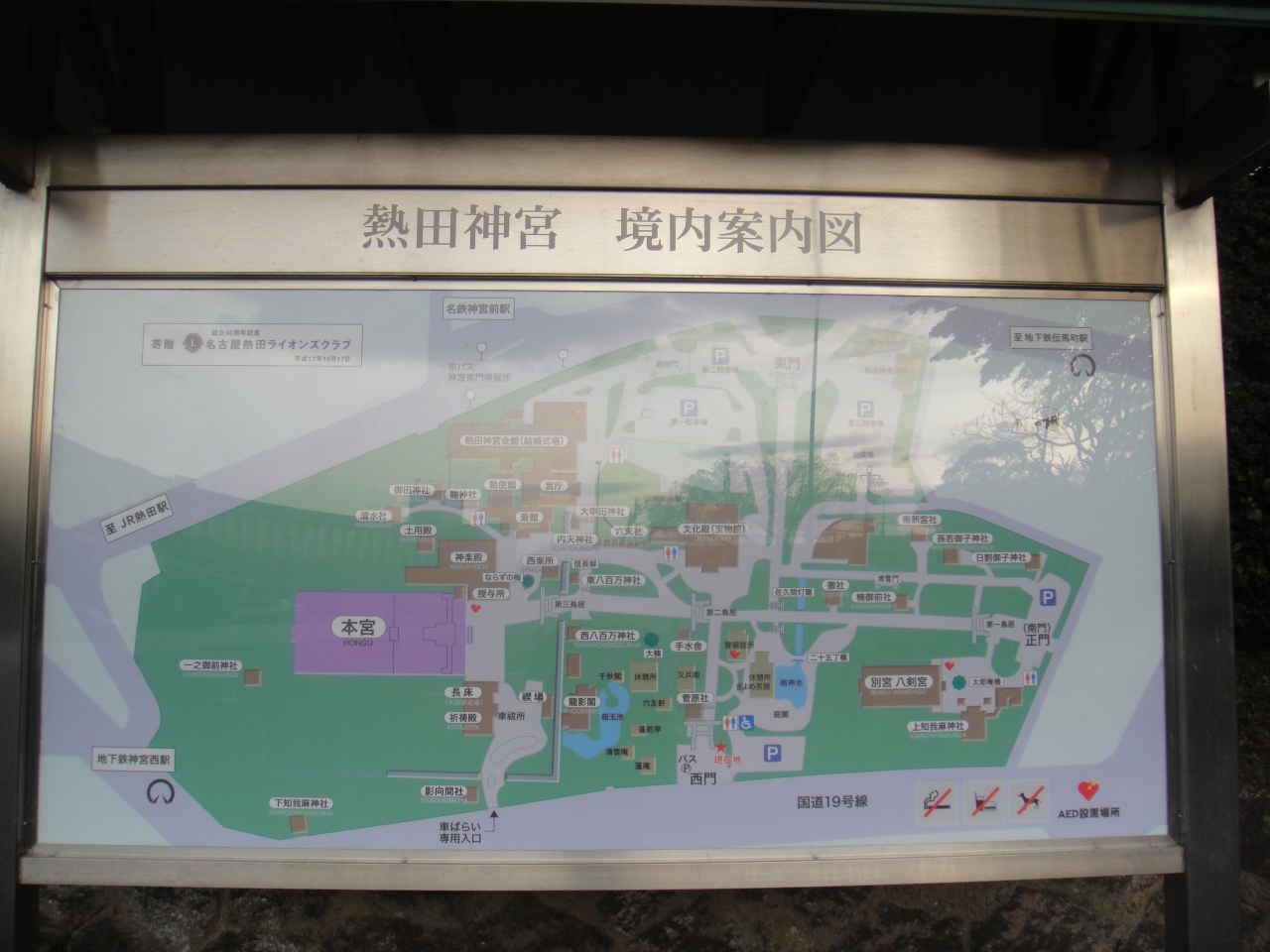 普通の時に行ったので普通の神社という感じです。ただ境内は広く、南側の正門から本宮まで2~300mくらいというところでしょうか。折角なので正門から行きましたが、木立に囲まれた長い参道を歩くだけです。本宮近くに信長塀というのがありました。ほか、宝物館がありますが、神社は祭りや催し物のときにいくとおもしろいのではないでしょうか。街中にあるので都会の中のオアシスといった感じです。電車で行く場合は東側にすぐ隣接するような感じで東海道線と名鉄の駅があります。名鉄の方がやや近く、神宮前駅というのがあります。地下鉄だと西側に名城線の神宮西駅があります。金山駅からアクセスできます。本宮に近いところにあるのであっけなく着いてしまいます。