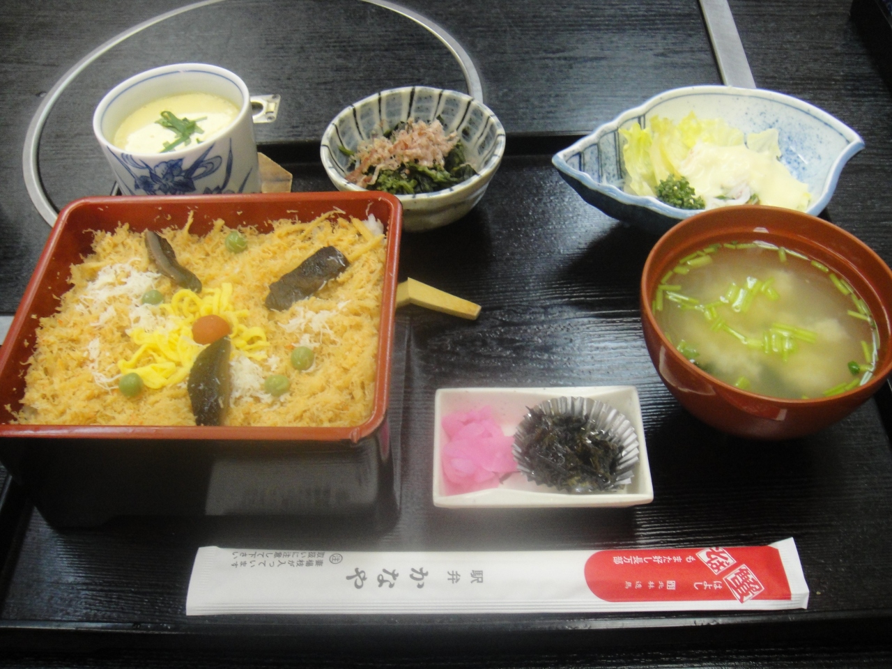 長万部駅の名物として駅弁が販売されています。特急の車内などでもよく販売されています。普通列車で行くと列車の乗り継ぎがうまくいかず、長万部駅で待たされることが多いので、たまには店舗で食べてみました。店舗は駅前にあります。室内で食べられる店舗と隣にお弁当の販売所があります。販売所の前は車数台が止まれる駐車場があります。店舗の中はお座敷もあり、2階席もあるようです。お弁当と異なり添え物なども併せてゆったりおいしく食べることができました。