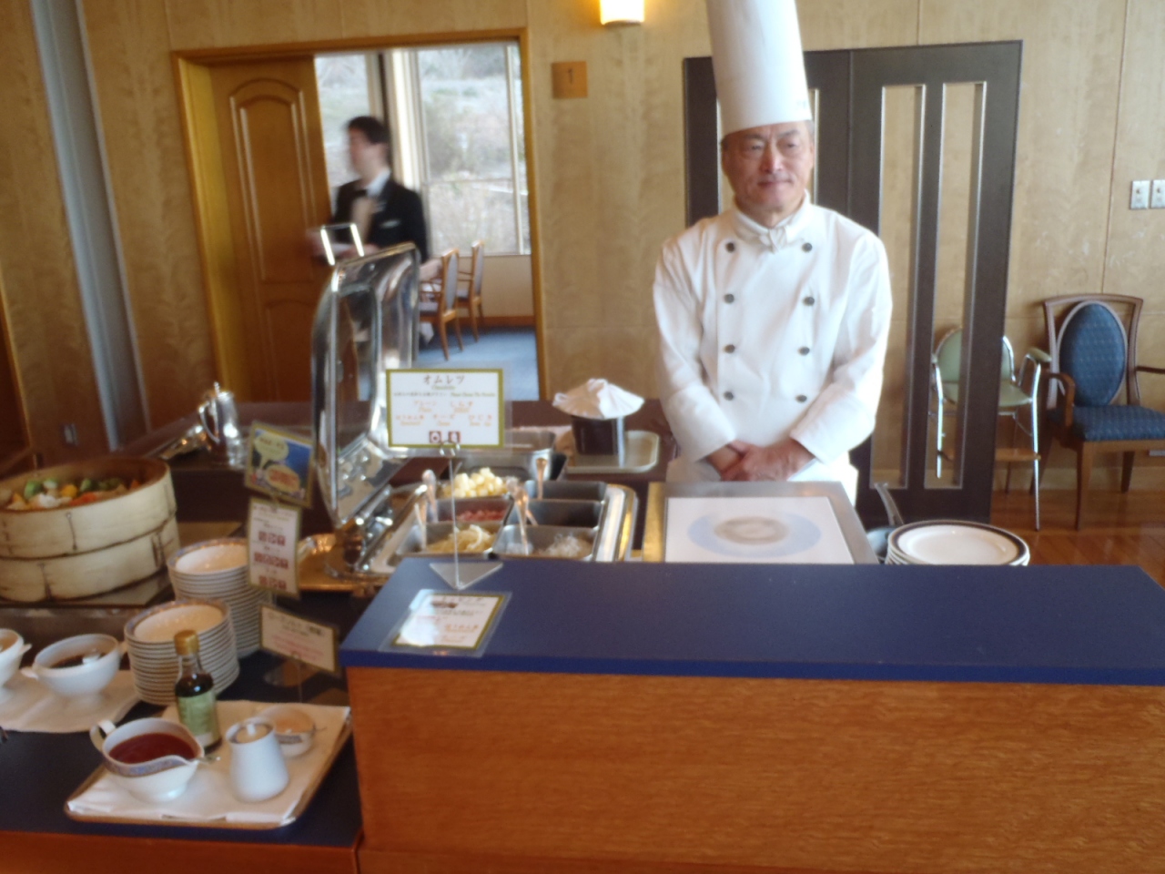 食事は鎌倉野菜の温サラダ、しらす、しらすを入れた手作りオムレツ、わさび漬け、パリパリのクロワッサン、鎌倉ハム、青汁入りのミックスジュース、ビネガージュースなど