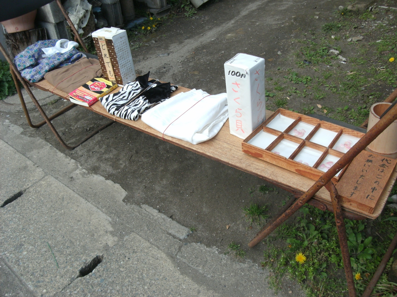 そう言えば、近くの通りでビンクのさくら貝(小袋入り)が無人販売されていました。