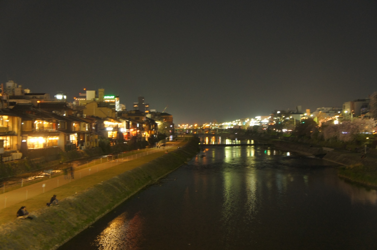 橋の上からの鴨川も素敵ですよ、桜も咲いていて♪