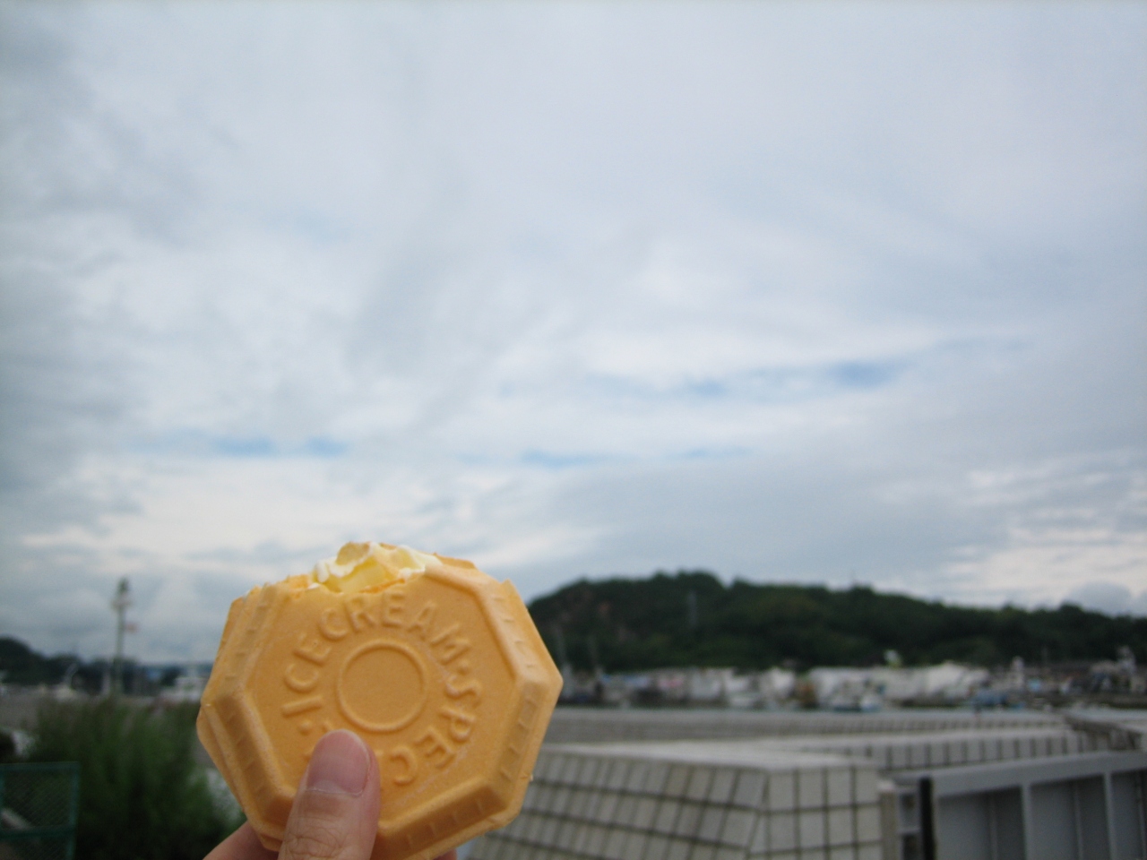アイスモナカは、注文するとその場ではさんでくれるので、皮はパリパリ、レトロな感じのバニラアイスがしっとり。