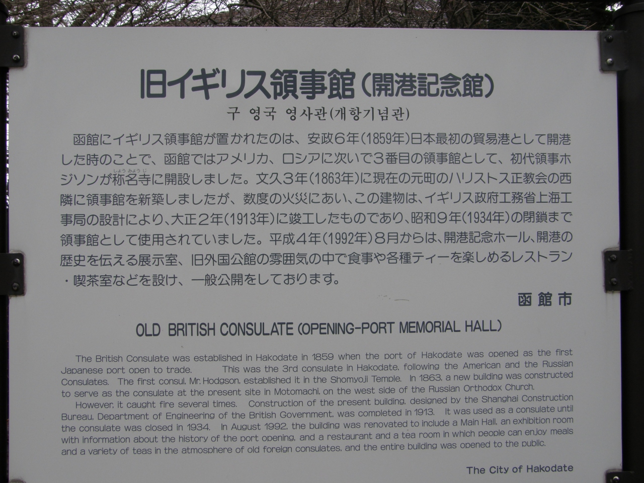 1859年(安政6年)初代領事のホジソン着任して以来1934年(昭和9年)まで