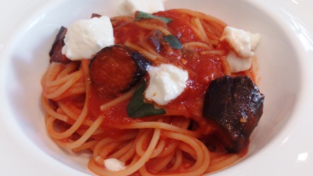 パスタの方はとトマトベースのモッツァレラ・チーズと茄子の上に生バジル。