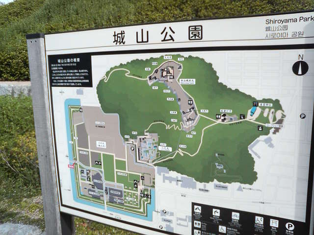 城山公園の敷地内には、ロープウェイで登る松山城周辺の他、路面電車と車が行きかう車道のそばの、お堀に囲まれた広場もあります。