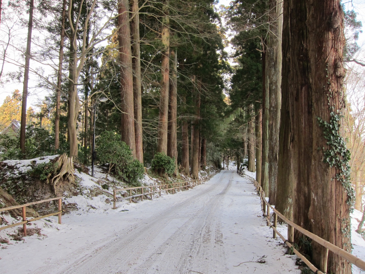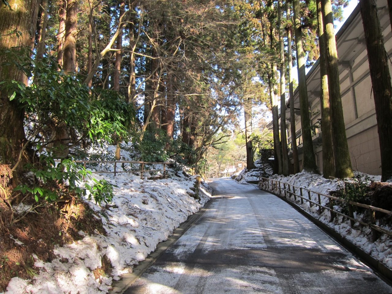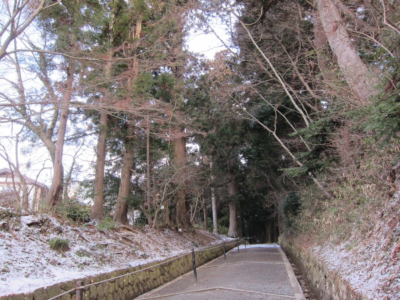金色堂や資料館である讃衡蔵、本堂がある所までは国道4号線から月見坂を登って500mほどあります。標高差も4~50mほどあるのではないでしょうか。讃衡蔵の横に車道がありましたので、タクシーでもいけるのではないでしょうか。月見坂は基本、木立の中を進みますが、途中、束稲山方面の視界が開けるところがあります。讃衡蔵のところでチケットを買い、金色堂と讃衡蔵を見ることができます。讃衡蔵の横にはおみやげコーナーや自販機、トイレもありました。金色堂はよく木立に囲まれた映像を目にしますが、それほど山深いところでもありませんでした。