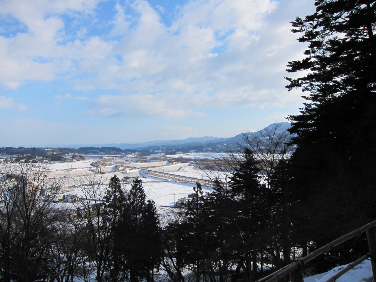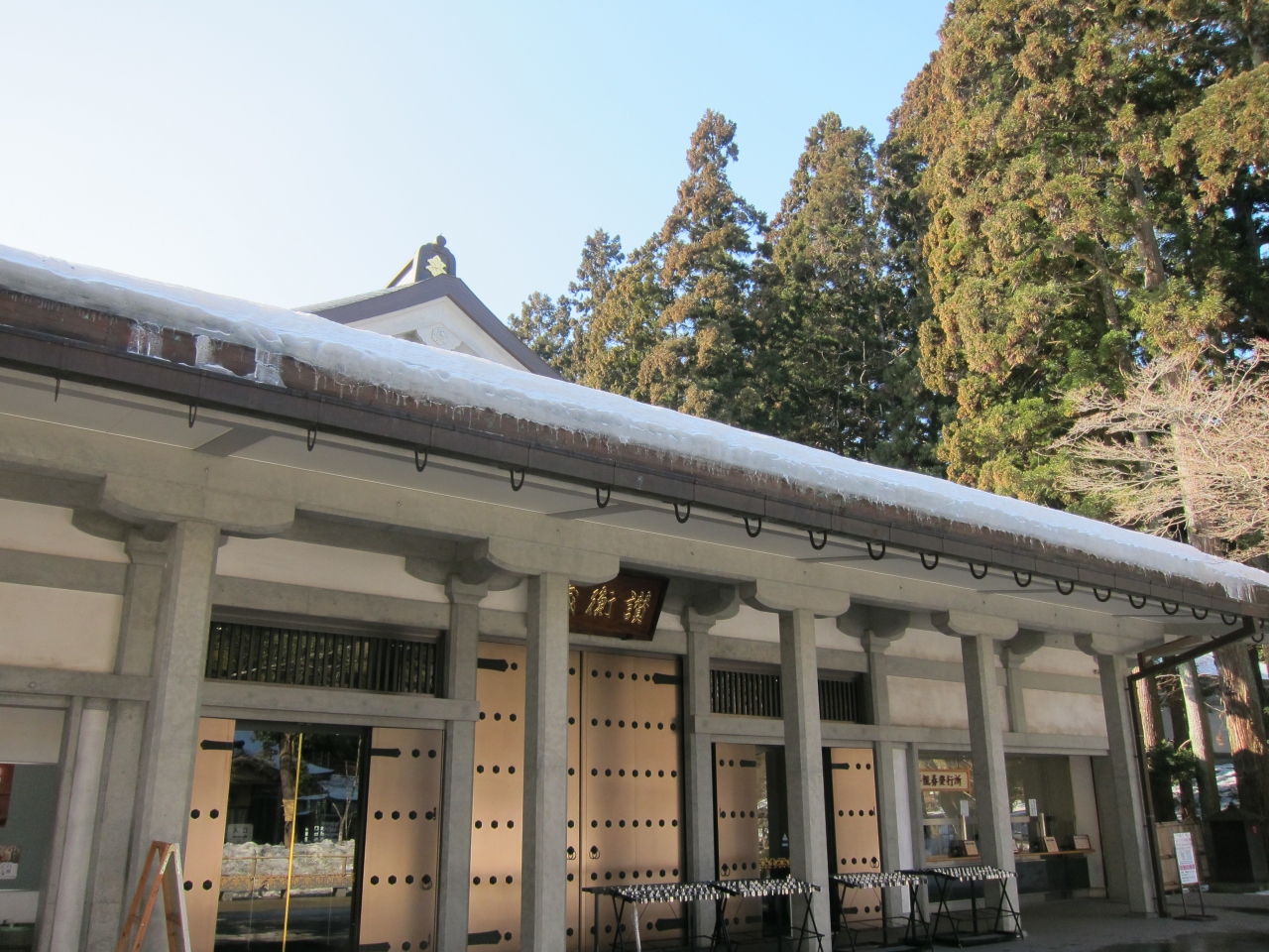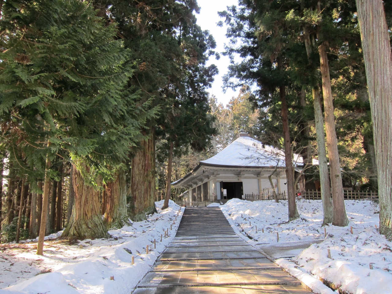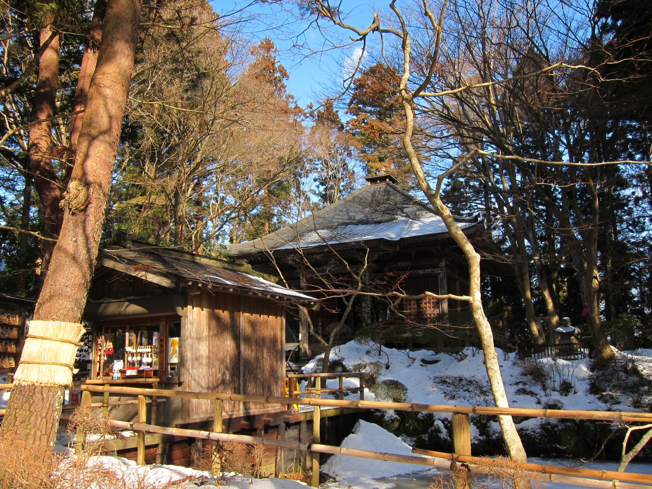 金色堂や資料館である讃衡蔵、本堂がある所までは国道4号線から月見坂を登って500mほどあります。標高差も4~50mほどあるのではないでしょうか。讃衡蔵の横に車道がありましたので、タクシーでもいけるのではないでしょうか。月見坂は基本、木立の中を進みますが、途中、束稲山方面の視界が開けるところがあります。讃衡蔵のところでチケットを買い、金色堂と讃衡蔵を見ることができます。讃衡蔵の横にはおみやげコーナーや自販機、トイレもありました。金色堂はよく木立に囲まれた映像を目にしますが、それほど山深いところでもありませんでした。