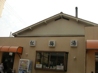 船橋駅から国道14号線(千葉街道)を西に進み船橋郵便局の先にある紅梅湯に向かいます。3時の営業開始まで30分ほど時間があるので、もう一軒の温泉銭湯の第ニ一の湯に行ってみると3時になっても開かないので、紅梅湯に戻ると煙突から煙が出て開いていました。
