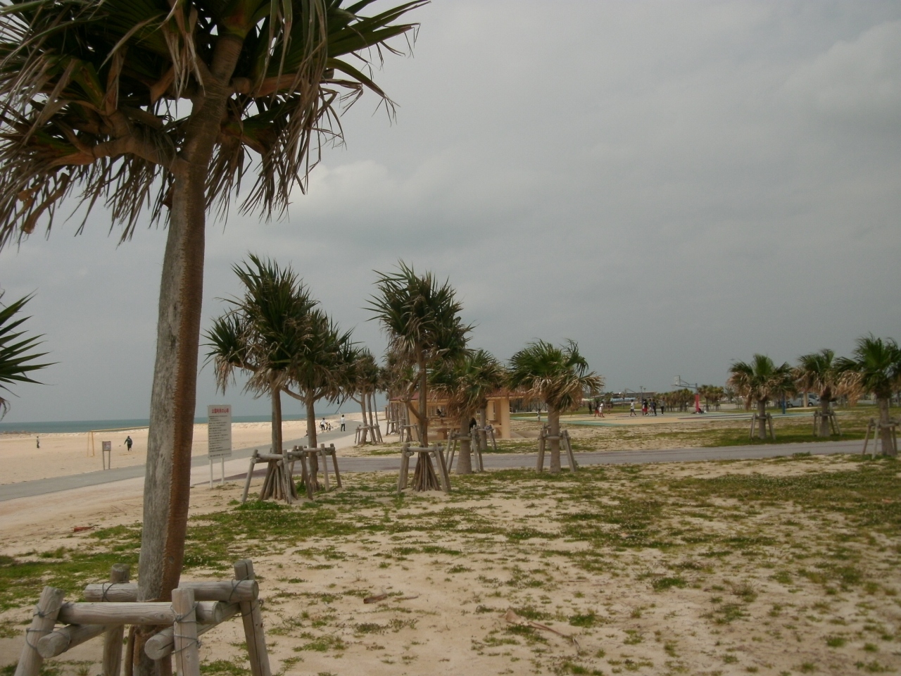 「豊崎海浜公園」は、豊見城市の西の端、豊崎地区にある沖縄県最大級の豊崎美らSUNビーチを芝生広場が囲む開放的な大きな公園です。駐車場は広く、無料でした。レンタルサイクル、バスケットコート、ビーチバレー、ビーチサッカーコート等が完備されています。敷地の西端には、平成18年公開の映画“涙そうそう”のロケ地になった“兄ィニィの丘”がありました。那覇の市内からでも車で15分程度なので、天気の良い日には一日のんびりするのにいいところだと思いました。