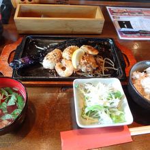ハンバーグステーキとシーフードを頼みました。