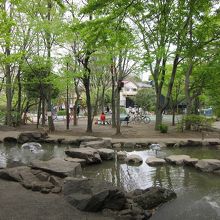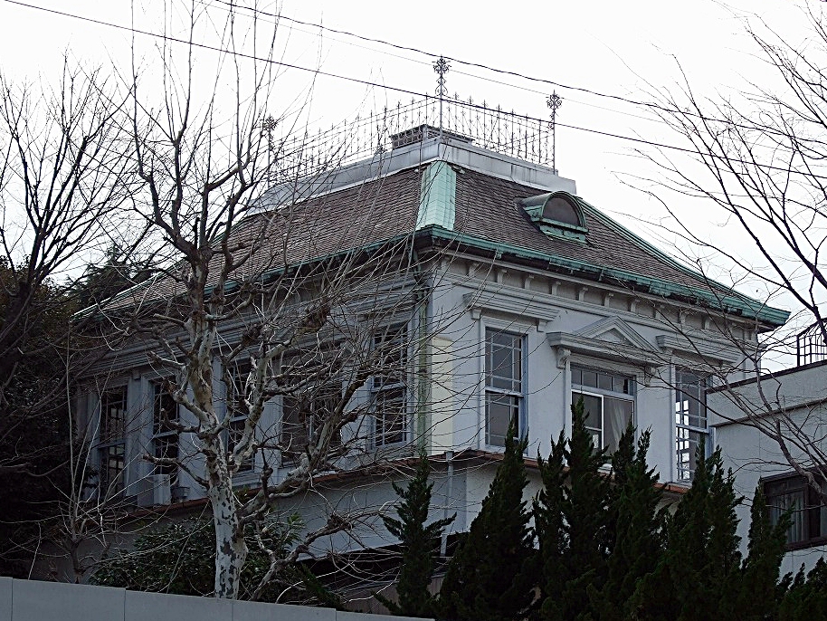 日本庭園風の池があったり、ネットで囲まれた球技場や子供の遊具があったりする割と広い公園ですが、魅力的だったのは、隣に明治時代に建設された洋館が建っていたことです。
