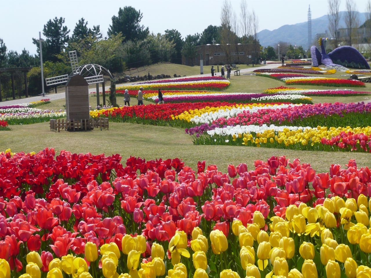 奇跡の星植物館の温室も素晴らしかったのですが、公園はチューリップが満開で、水仙や他の花もきれいでした。