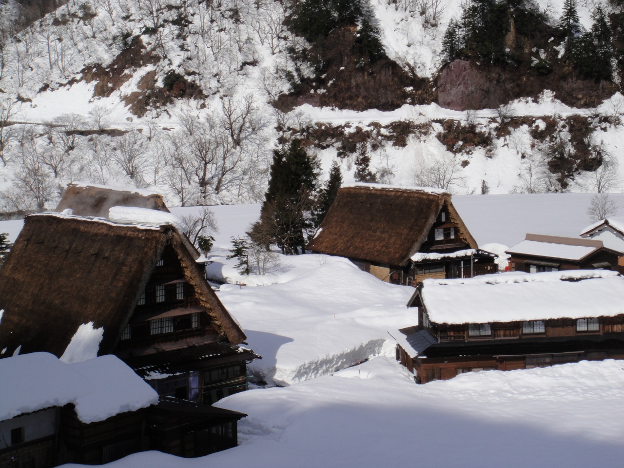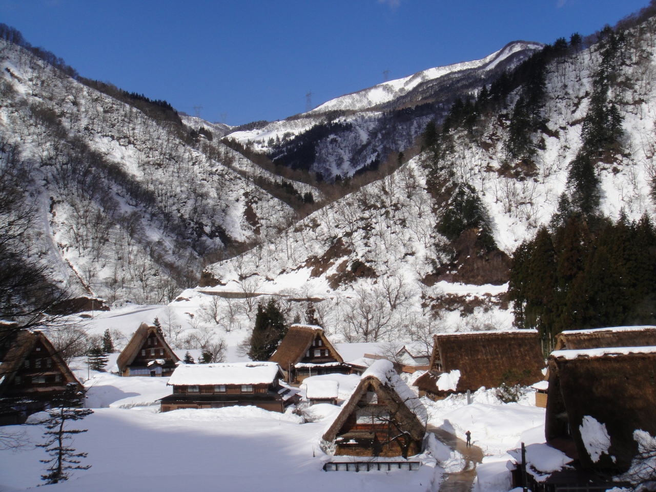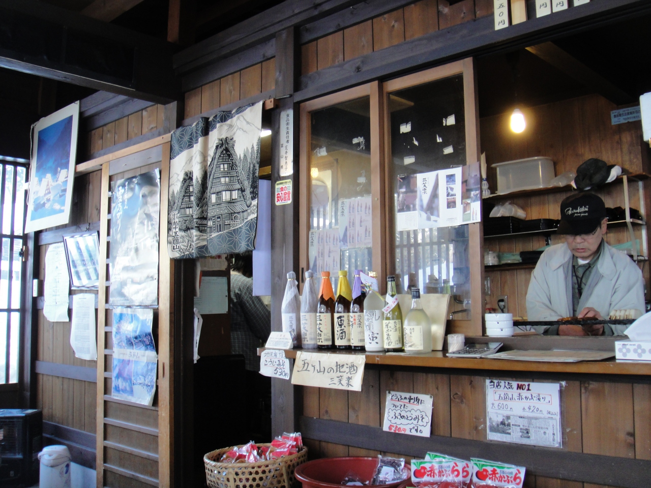 五箇山地区の西側にあります。東側の相倉の集落などに比べると観光施設やお土産屋なども充実しています。道路もきれいな舗装になっているなど、相倉集落に対し素朴さは落ちると思います。お土産(食べ物)では、赤カブのつけものと地酒の三笑楽が地元のおすすめなようです。小さな食堂で山菜蓬そばと五平餅を食べました。冷えていた体においしかったです。毎年2月の建国記念日の休日前後にライトアップなどの催し物をやっているようです。