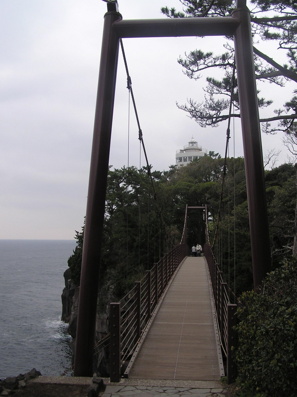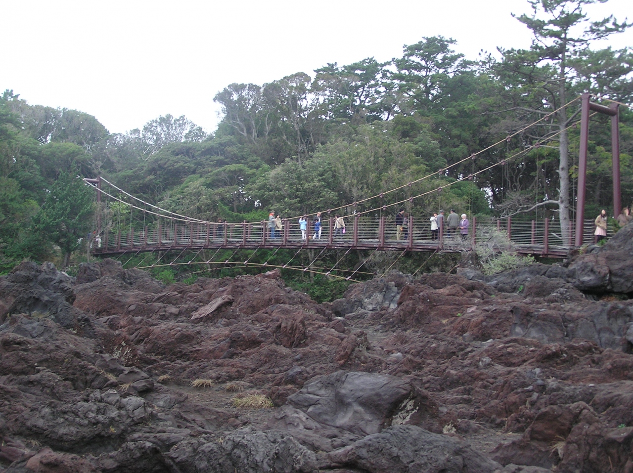 大室山の噴火によって海に流れ込んだ溶岩が波に浸食されて出来た変化に富んだ海岸です。ここの第一の見所は、その海岸にかかる“門脇吊り橋です。駐車場(有料)から徒歩2~3分、海にかかる吊り橋で、眼下は海、潮風に揺れを感じながら渡るとスリリングな開放的な気分に浸れます。
