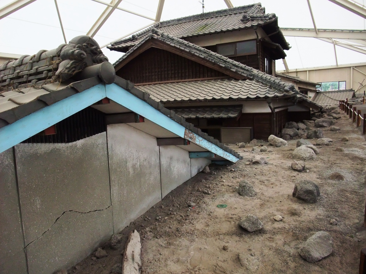 普賢岳噴火による水無川の土石流では、幸い人災はなかったようですが、深江地区の多くの家屋が被害を受けました。「土石流被災家屋保存公園」は、大雨によって土石流が流れた跡地で、この時埋まった家屋はそのまま保存されています。土石流で家屋の1階部分が埋まってしまった家々、見えているのは屋根だけの家、その時を境に時が止まってしまったかのような土石流被災家屋を見ると、胸が痛みます。また、どうしょうもなく大きな自然の力に驚異を感じます。