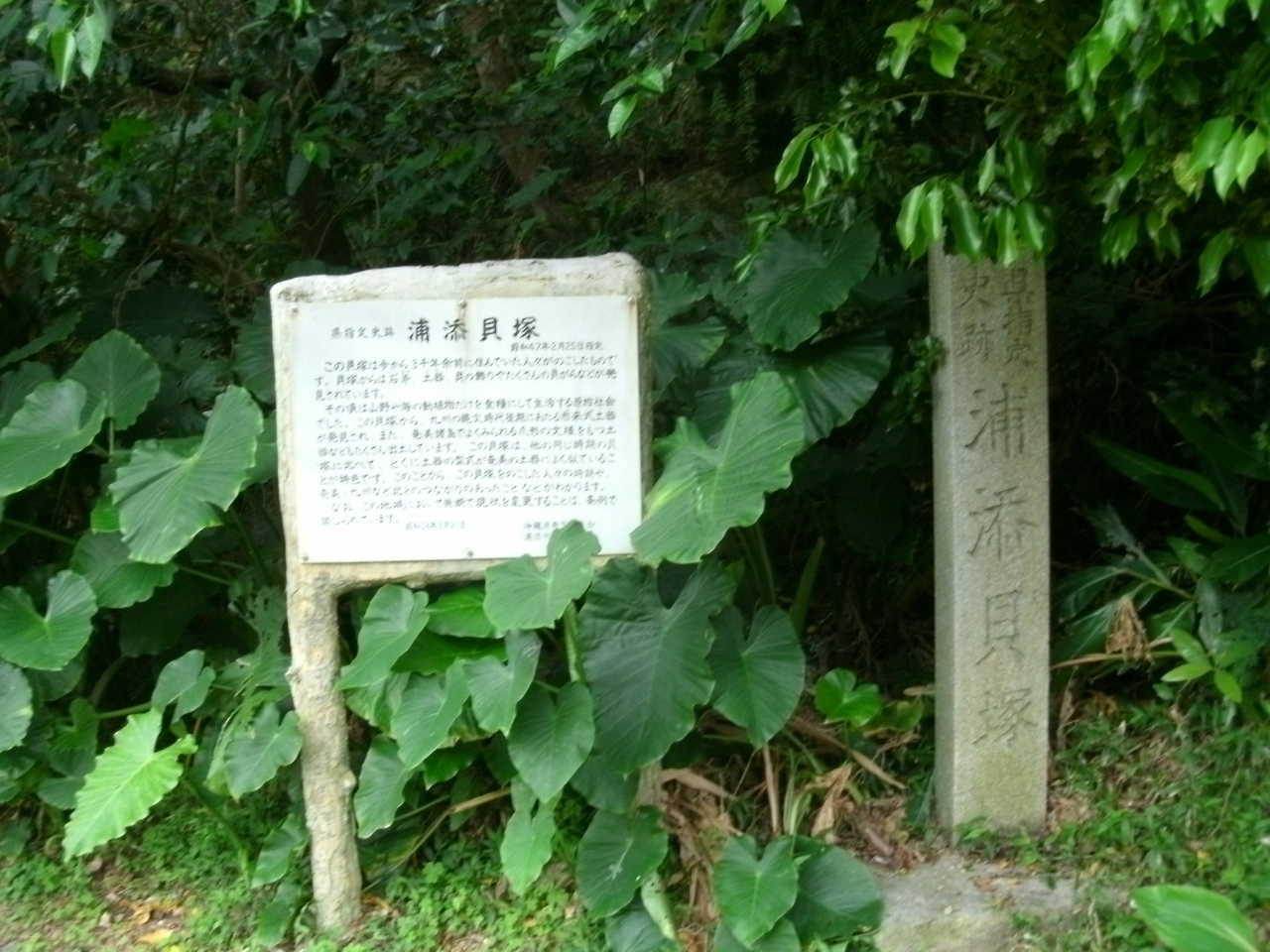 「浦添貝塚」は、国道330号線、浦添市の伊祖トンネルの上の丘陵部の北側にて形成された約3000年前の貝塚時代前期の遺跡です。発掘調査で九州の市来式土器(文様や器面の仕上げに貝殻を用いた土器)が出土して、九州と沖縄の文化交流を実証した遺跡として知られています。丘陵の上からたて穴住居跡が見つかり、その崖下は貝塚になっています。1972年に県指定史跡となっています。近くには、“伊祖の御高墓”や“伊祖城跡”などの史跡があるのであわせて、歴史好きの方にお奨めします。