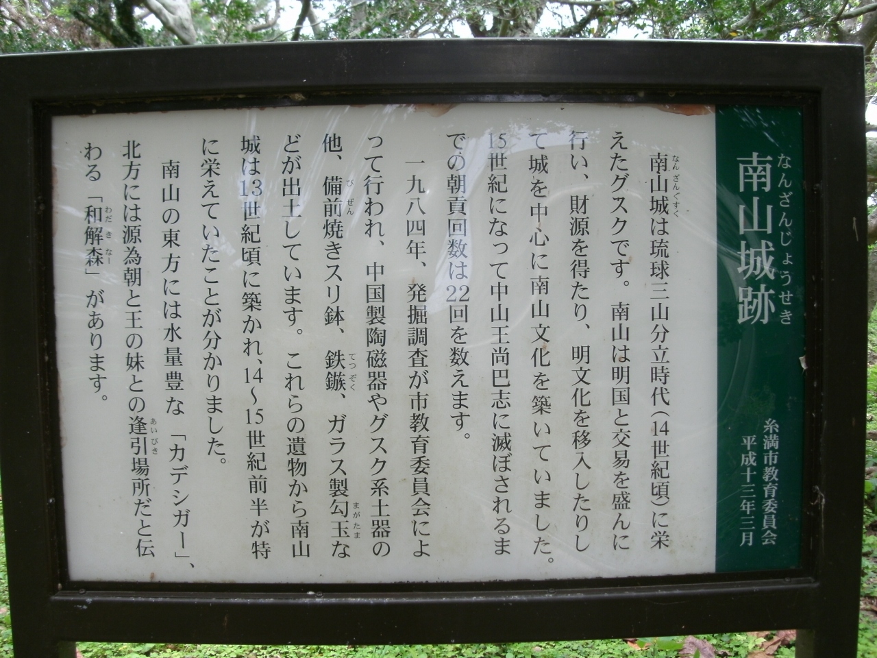 「高嶺大里城跡(南山城跡) 」は、糸満市の県道7号線沿いの高嶺小学校のそばにあります。南山城は三山時代の主役の一角を担った、南山王の居城です。地名から高嶺城、島尻大里城とも呼ばれます。現在は糸満市立高嶺小学校と隣接しており、残っている遺構を確認する為には、小学校の敷地に入る必要があります。城跡とは言いつつもほとんど遺構は残っておらず、わずかに石垣が残ってる程度で、三山時代の栄華を偲ぶことは出来ません。