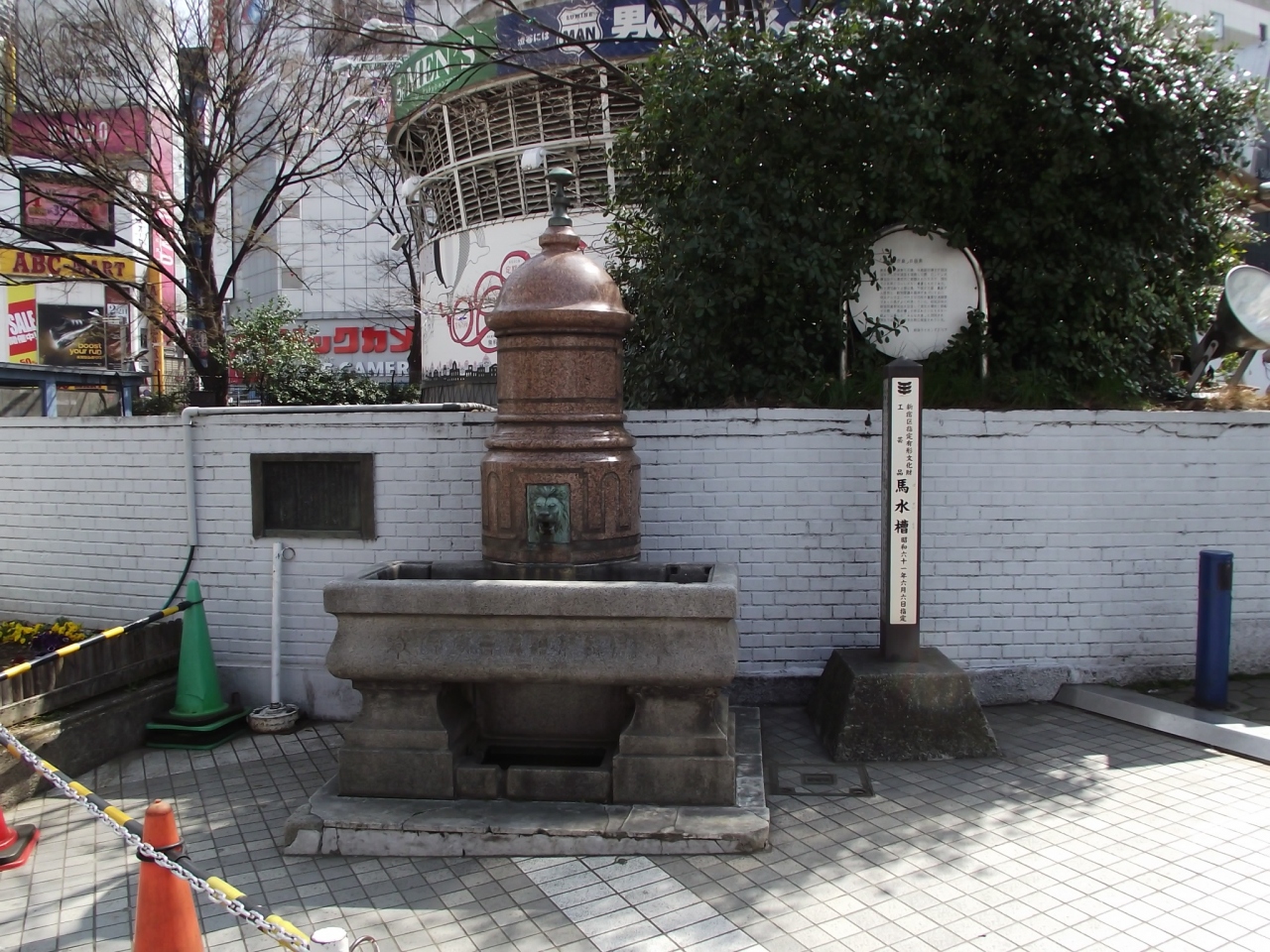 これは、明治39年ロンドン水槽協会から東京市に贈られたもので、上部が馬、下部が犬猫、裏側が人間の水飲場となっており、元来動物愛護の目的で造られたもの とのことです。