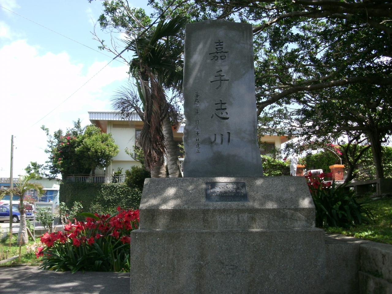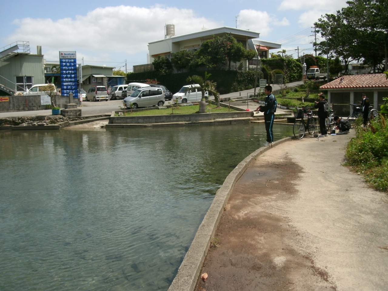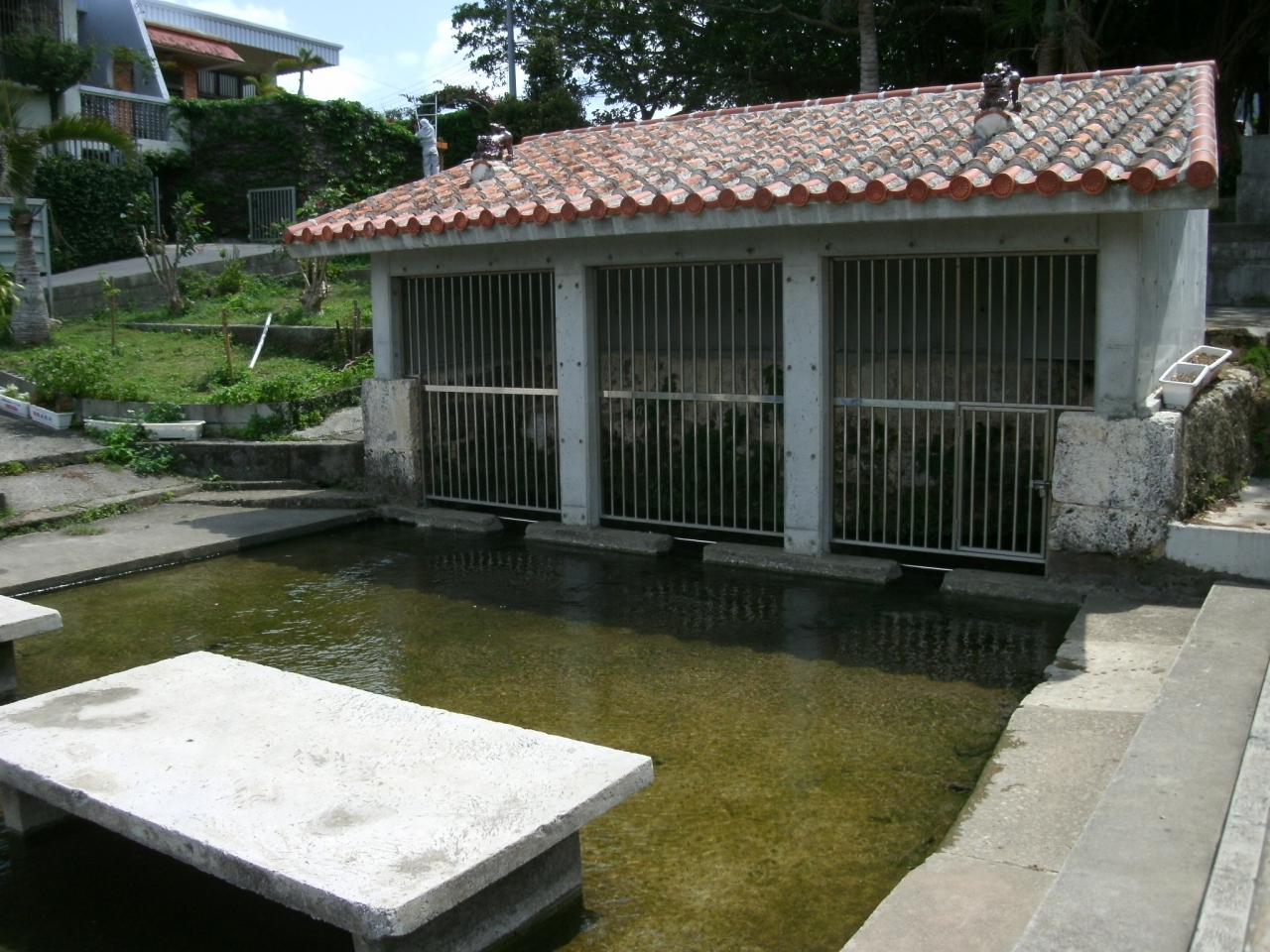 「嘉手志川」は、糸満市の県道7号線沿いの高嶺中学校の道を挟んで反対側にあります。“川”となっていますが、水が湧き出て、泉と言うかプールの様になっているところです。水量が豊富で昔から地域住民の生活を支え、大事に守り受け継がれてきました。現在も変わることなく生活用水、農業用水として利用され、泉周辺は、ガジュマルの大木とともに地域住民の憩いの場となっています。透明で綺麗な泉の中には大きな魚も泳いでおり、子供達が魚釣りをしていました。ゆっくりした気分になれる、いい雰囲気のところでした。