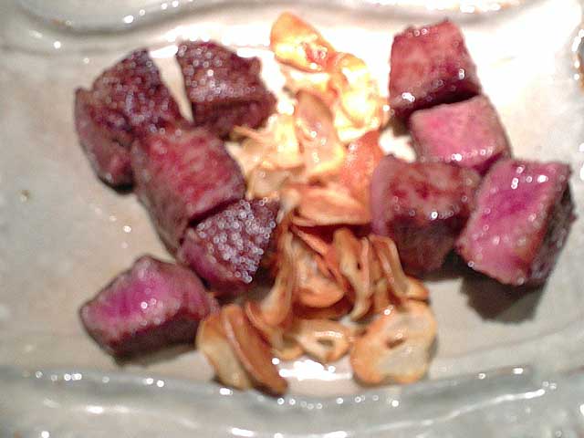 ただ一つだけ…ツレとの会話で「ステーキを食べに行くと脂身は全部外されるんだよね。脂身って子供の時は大好きで好んで食べたよねー」というのがあり、ステーキの時にガーリックチップとともに脂身も付けてくれたのは、ゲストの会話をそれなりにモニタリングしているのだなと感じたところであった。(まぁ聞こえる様に会話したのだが…(^^;))