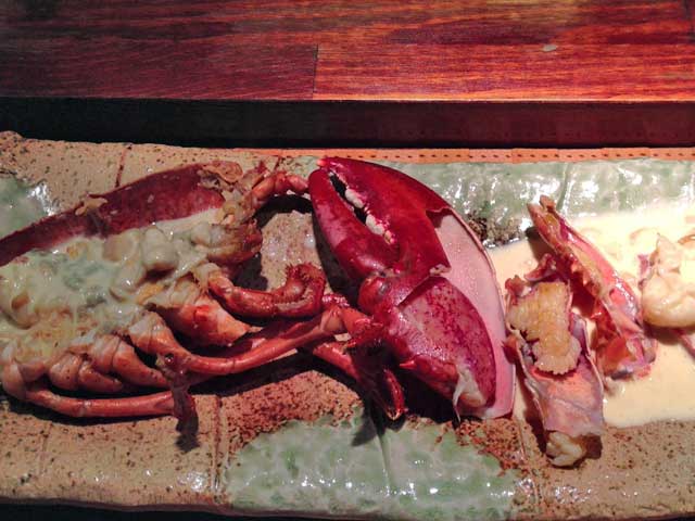 さて料理に関しては、食材は新鮮なオマール海老(ロブスター)やアワビを使用している。サイズはやや小ぶりではあるがコースとして頂くにはちょうどよいポーション。味付けは、極々シンプル。良く言えば素材を生かそうとしていると言えるが、早い話が鉄板で焼いているだけ…。鉄板焼きって…そうじゃないのよね。火の入れ方(素材によって火加減を時間を追って変化させる)、蒸し方、そのちょっとした調理方法の違いで、素材は何倍にも生きて来るし、どんなに新鮮な素材でも死んじゃう…。こちらは火の使い方にあまり拘りがないのかなぁ。やはりお好み焼きを焼いている時の様に、一定の火力で素材を焼いているだけに思われた。素材は良いのにもったいない…。だから温泉旅館のアワビの踊り焼きと同じ味と食感になっている。特にアワビは強火の後、一旦弱火で少々長めに蒸すと、もっと味が凝縮され、歯触りもなめらかになると思う。それが温泉旅館のアワビ焼きとは異なる所なのだが。