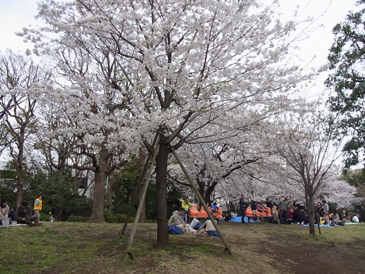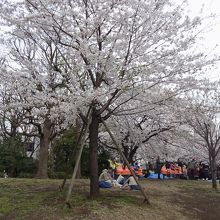 丁度桜が満開の時で、お花見をしている方がたくさん!