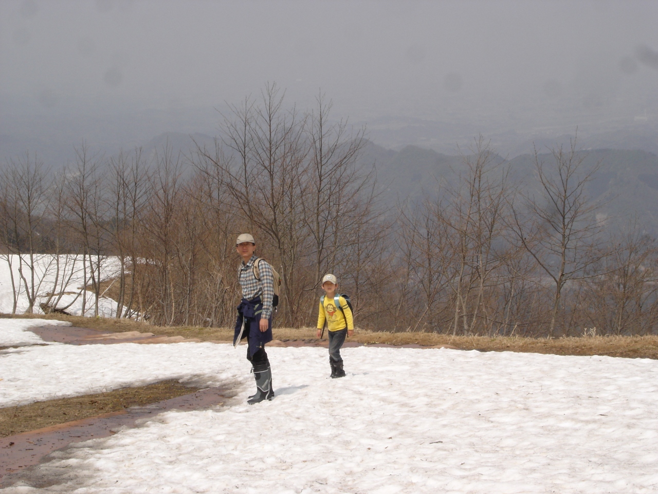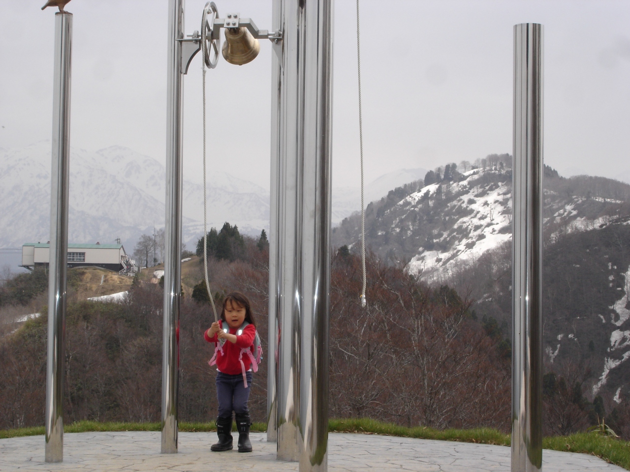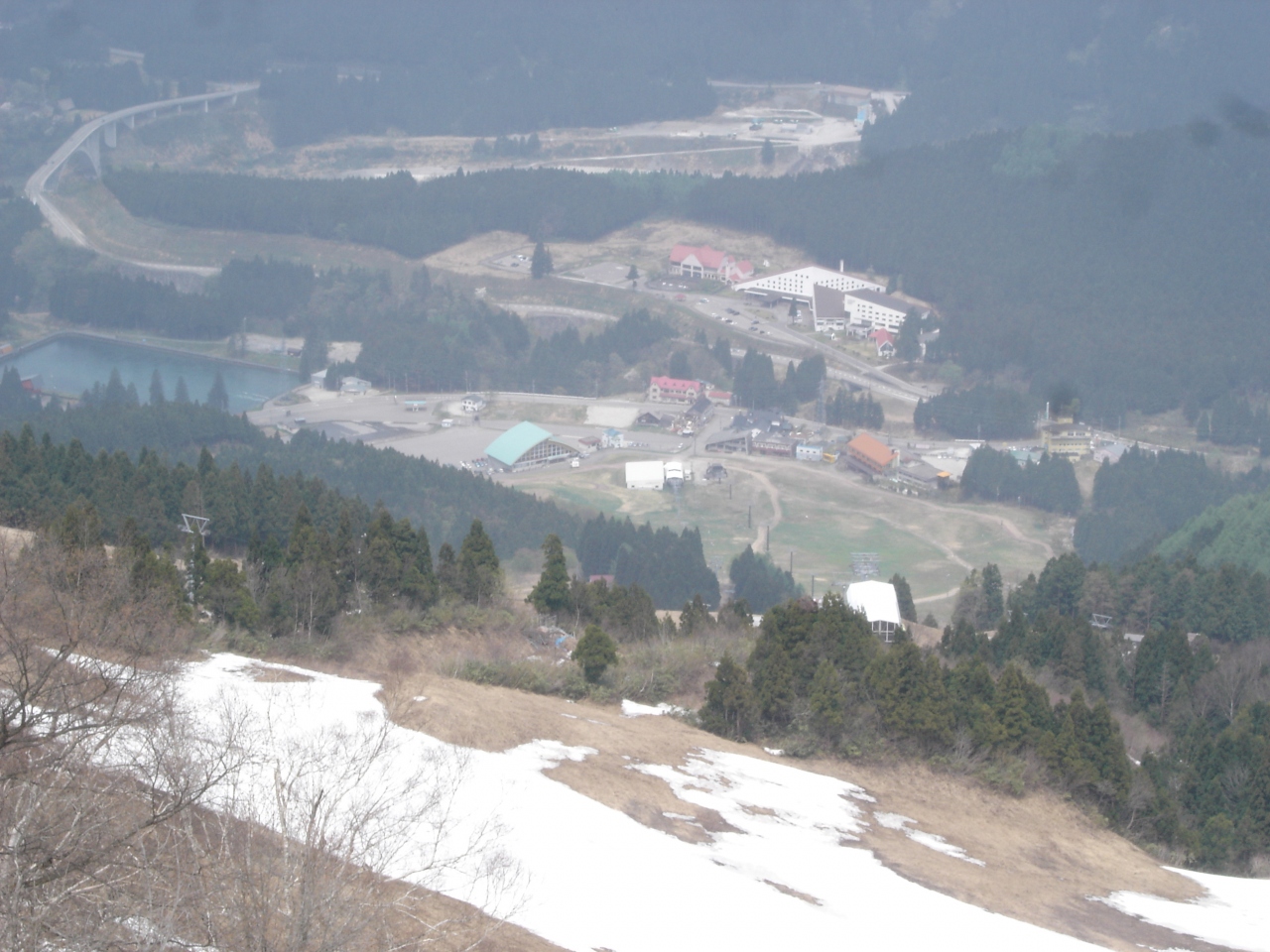5月の連休に行ったときには、積雪がかなり残っていました。ゴンドラ山頂駅で、長靴を貸してくれたので、雪の上を歩いて展望台まで行くことができました。