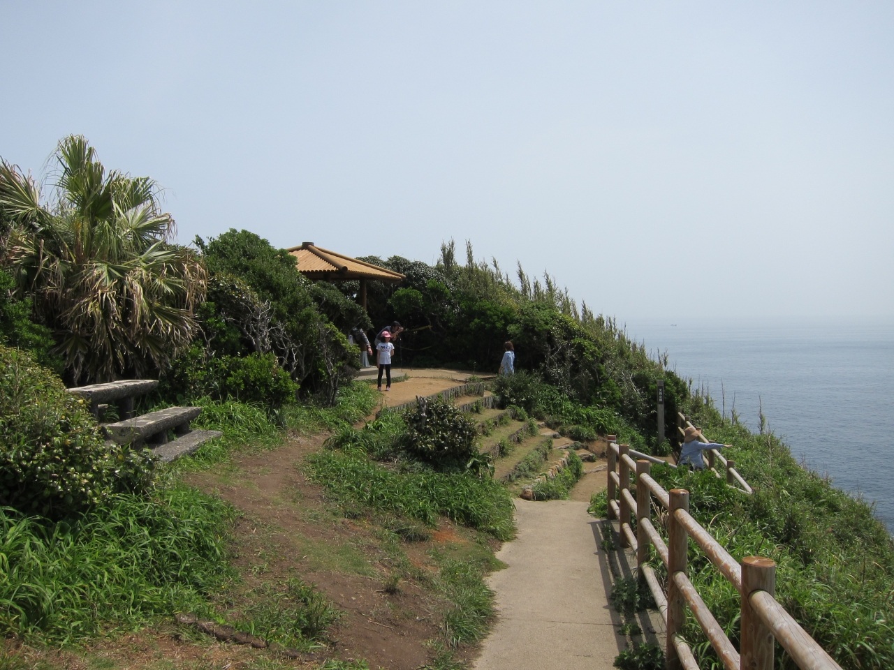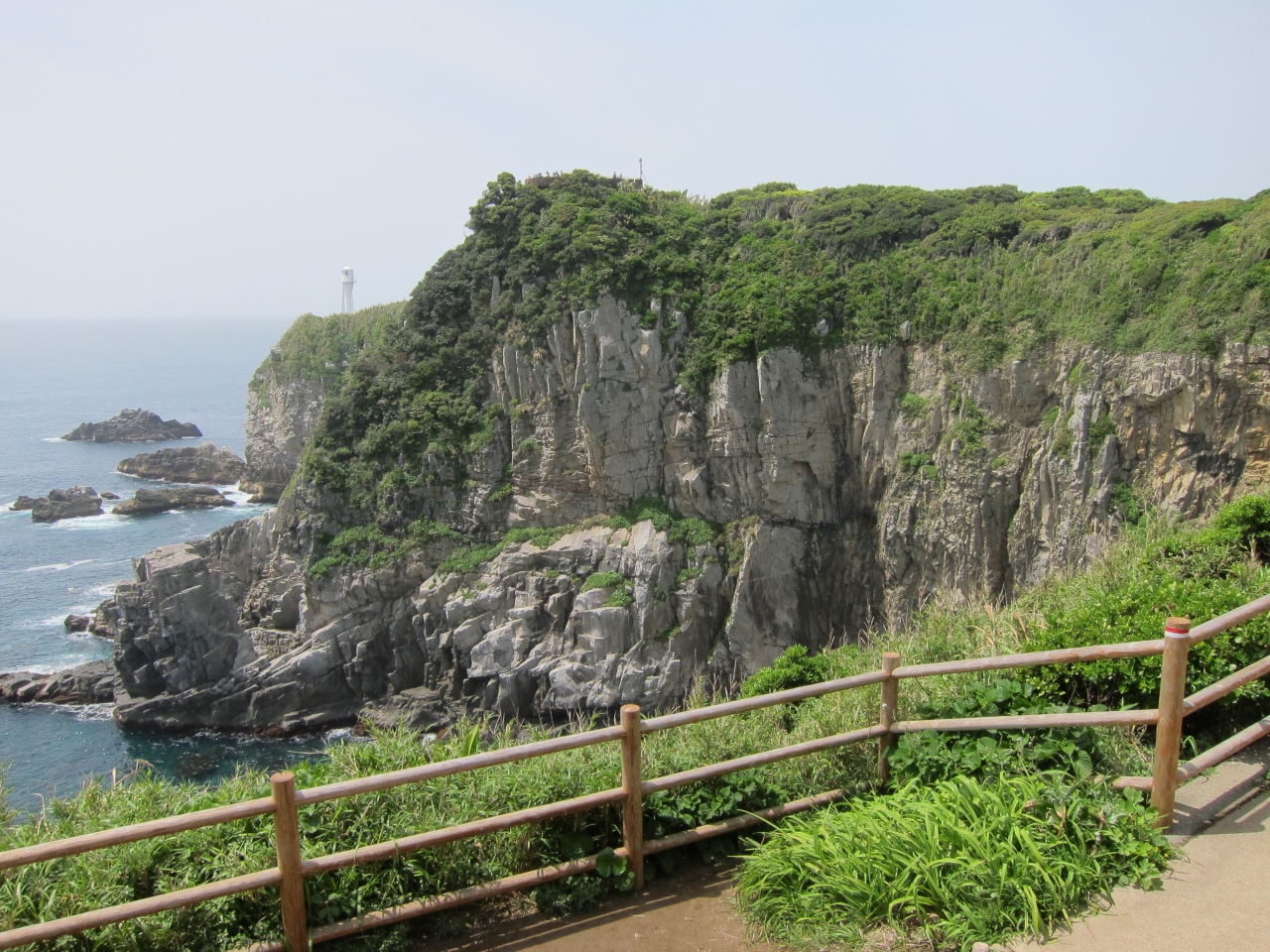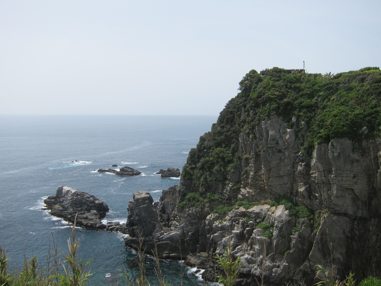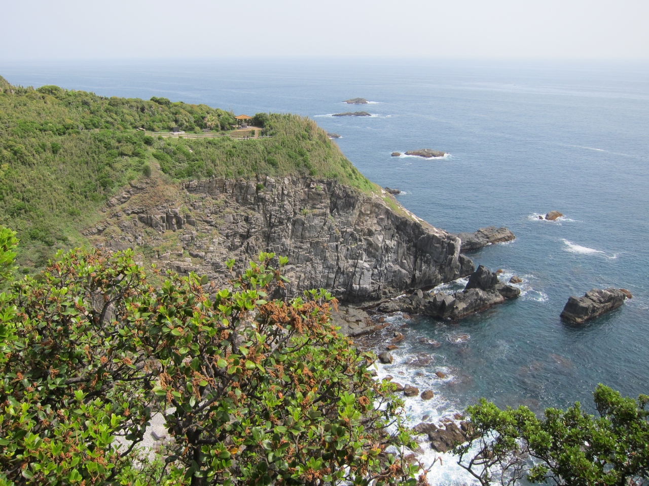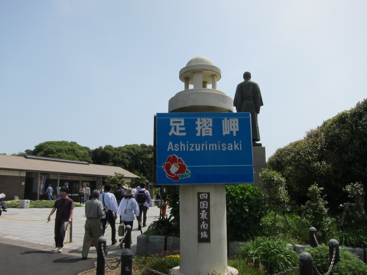 土佐くろしお鉄道の中村駅からバスで1時間ほどです。展望台、灯台、天狗の鼻、白山洞門、金剛福寺などのポイントがあります。バスの終点から少し進み、遊歩道の入口のところに足摺岬の標とジョン万次郎の銅像があり、目印となっています。すぐのところにトイレなども揃っています。直進するとウバメガシなどの潅木の森に入り込みます。お土産屋が1軒あり、軽食なども調達できます。そしてすぐのところに展望台があります。ここと天狗の鼻は眺望が利きます。さきに挙げた展望台などの5つのポイントを遊歩道で回れますが、距離も多少あり、眺めている時間などを含めると1時間では全く足りません。