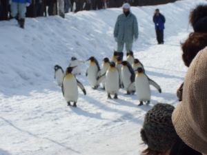 旭川空港から旭山動物園行きの直行バスがあったので利用しました。所要時間は40分ほど。開園待ちのお客さんが多かったので、15分ほど開園時間を早めてくれました。このへんの配慮はうれしいですね。園内にはさまざまな動物がいますが、雪の降る時期だけ行われているペンギンのお散歩を見ることができて良かったです。ヨチヨチあるくペンギンは可愛いですね。