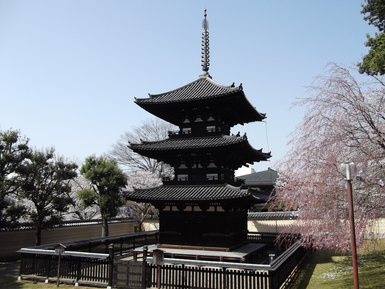 三重塔は、三条通りを駅から興福寺に向かってあるくと、階段を登ってわき道に入ったところにあります。わき道に入ったところに建っているせいか、見物客は、少々少ないです。