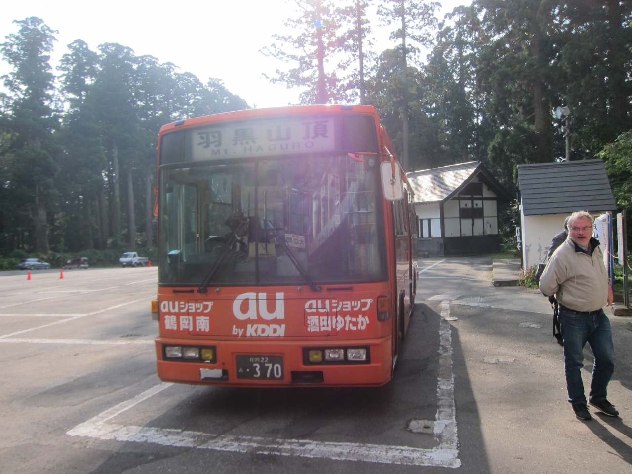 出羽三山ということですが、月山(1984m)、湯殿山(1500m)に比べ羽黒山は414mです。山頂の三神合祭殿までバスで行けます(鶴岡駅前~羽黒山頂、50分)。雰囲気を味わいたい場合は、途中の羽黒センターで下車し、須賀の滝や五重塔を見ながら、杉林の中の表参道石段(2446段)を登るとよいと思います。