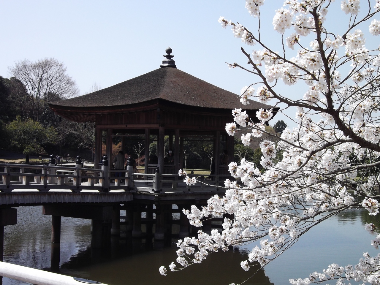 浮身堂は、奈良公園内の鷺池にあります。浮身堂付近の岸辺には、桜が植わっており、3,4月の桜の咲く時期には、写真を撮る人が多く集まります。
