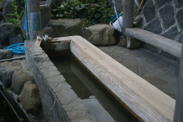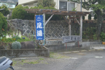 大川温泉磯の湯に入った後は、坂道を上って伊豆大川駅に向かいます。駅の横の踏切を渡った駅前に足湯があるので、電車の時間まで入っていきます。近くの大川温泉ホテルが提供している温泉で、成分分析書もあり、ナトリウム・カルシウム-塩化物・炭酸水素塩温泉でほど良い温度でした。