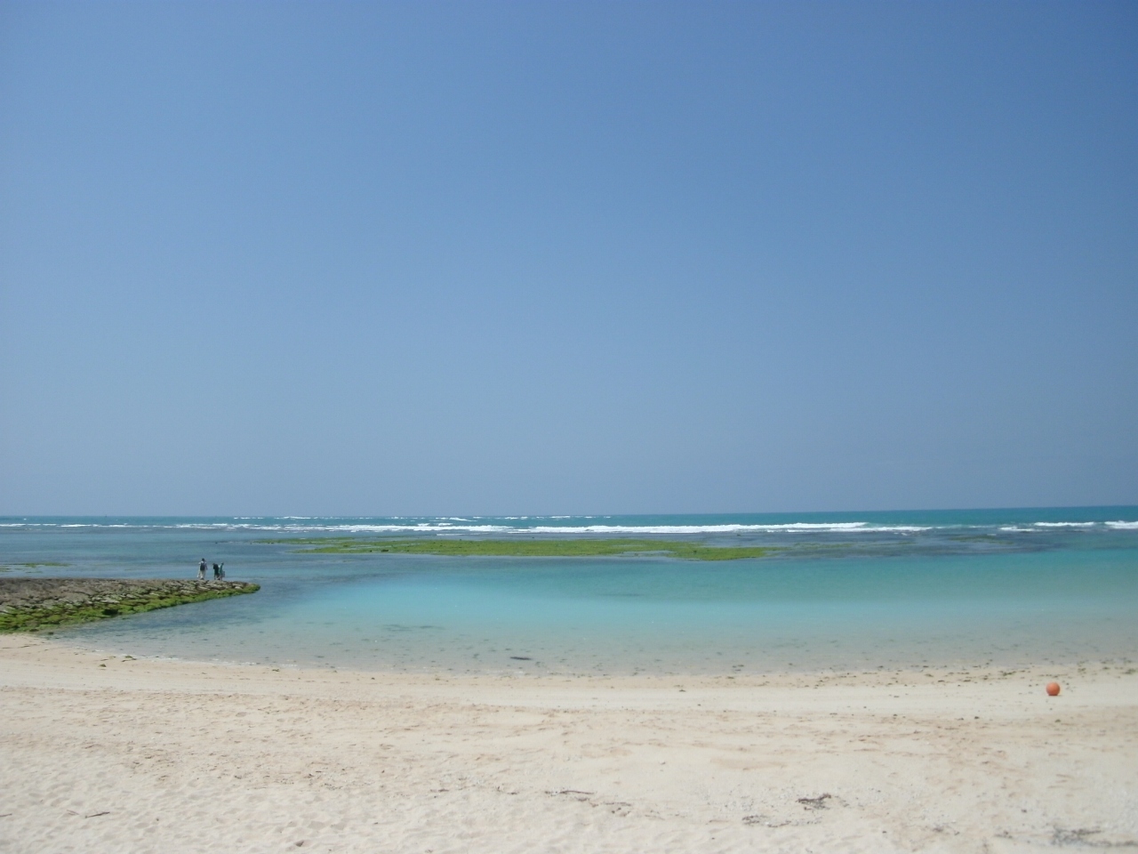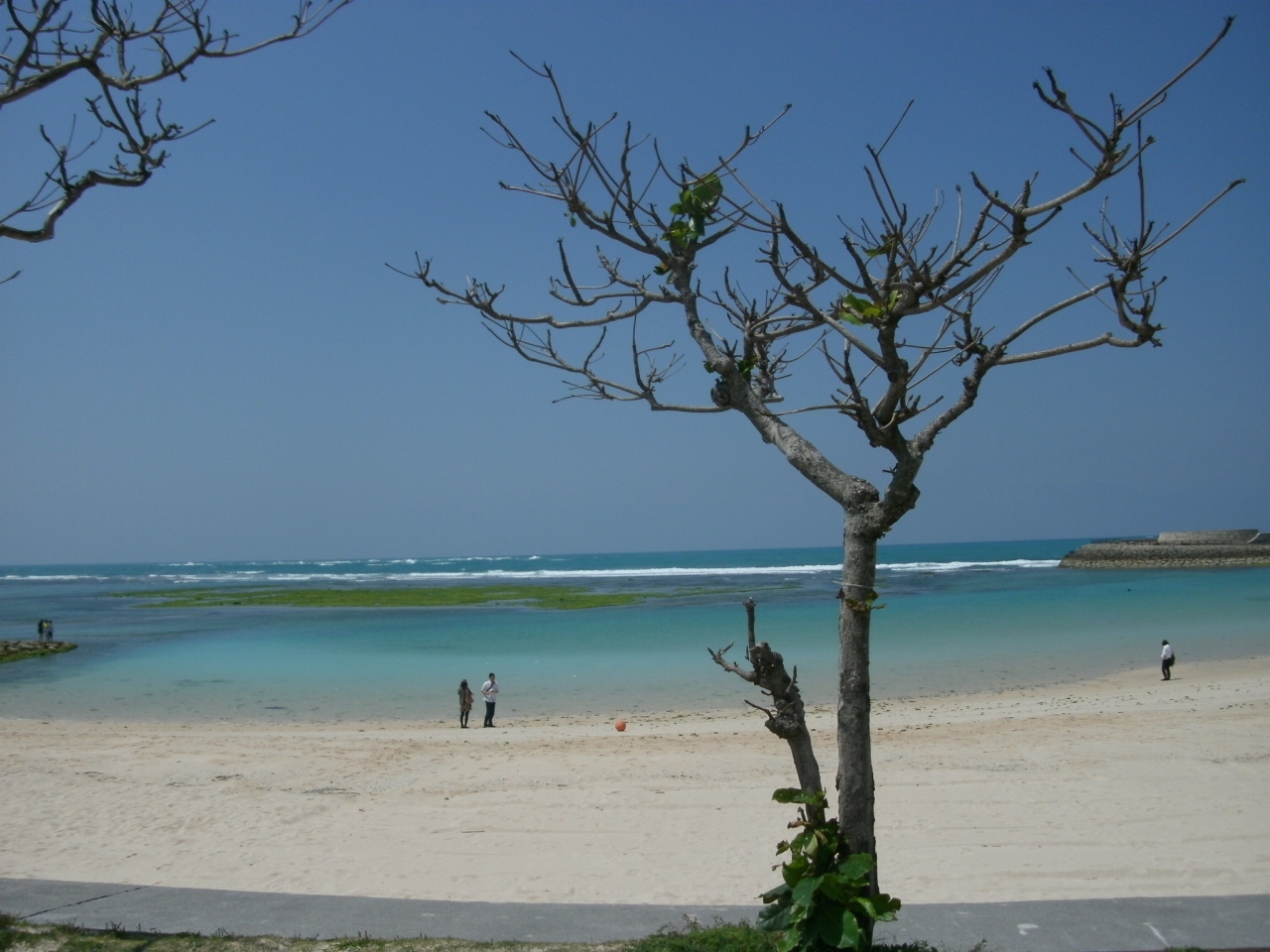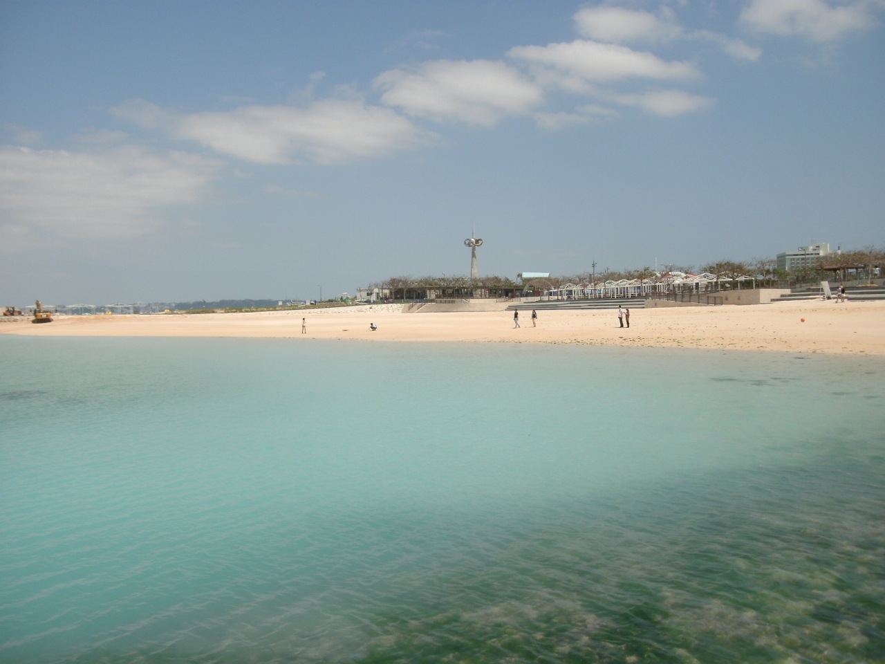 「宜野湾トロピカルビーチ」は、那覇市内から国道58号線を北に、車で20分ほどのところにあります。人工ビーチですがよく整備されていて古さは感じません。駐車場も充分確保され、ビーチの回りは木材のフロアーをめぐらせ、ベンチとテーブルも必要充分に配置されています。海の状態は、本土の人間から見れば大変きれいですが、沖縄の基準から見ると、それほど透明度は高くありません。那覇から近く、シャワー(100円)、ロッカー(200円)、トイレ、売店なども完備されているし、監視員もいるので、安全にのんびり楽しめる場所です。