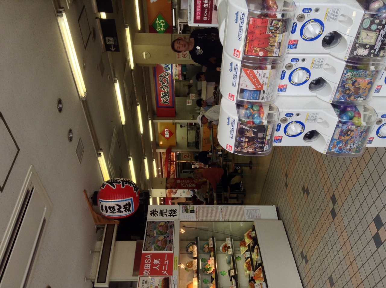 フードコートには、そば、うどんから、ハンバーグ定食のようなものまでメニューは豊富ですが、背もたれもないベンチに座って食べるので自ずと簡単なメニューに落ち着いてしまいます。