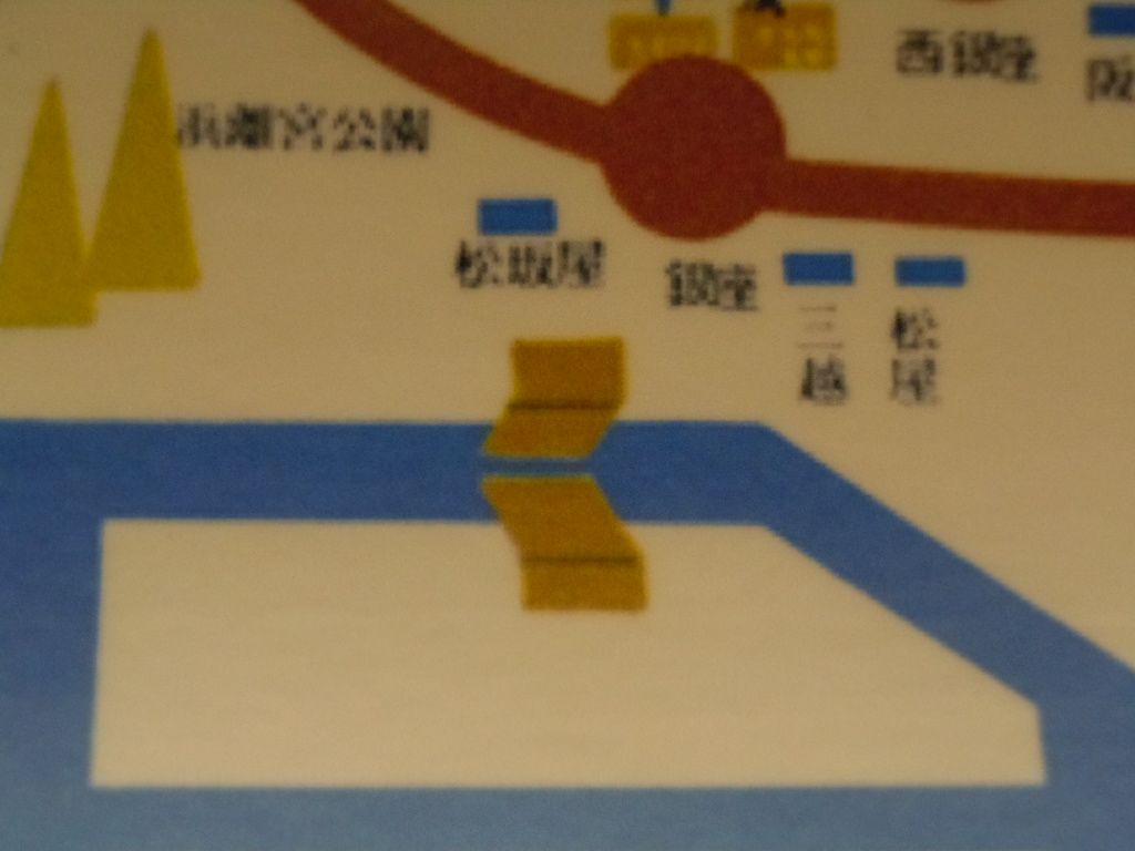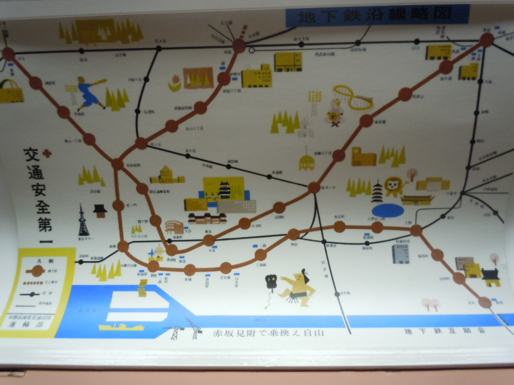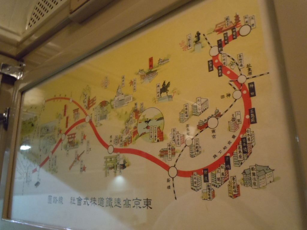 車両の中には昔の路線図が貼っており、見ると銀座のあたりに謎の標記。