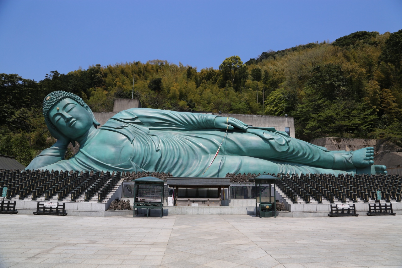 また、南蔵院では長年にわたりミャンマーやネパールの子供たちに医薬品、ミルク、文房具などを贈り続けた返礼として、ミャンマー国仏教会議よりお釈迦様、阿難様、目連様の三尊者の仏舎利の贈呈を受けた。この仏舎利をおまつりするために平成7年に釈迦涅槃像が建立された。全長41m、高さ11m、重さ300トン、ブロンズ製の涅槃像としては世界最大。完成を祝う落慶法要では、「千僧供養」がいとなまれ、日本国内をはじめ、東南アジア各地から約1,300人の僧侶が参列した。今では篠栗のシンボルとして人々の”心のよりどころ”となっている。