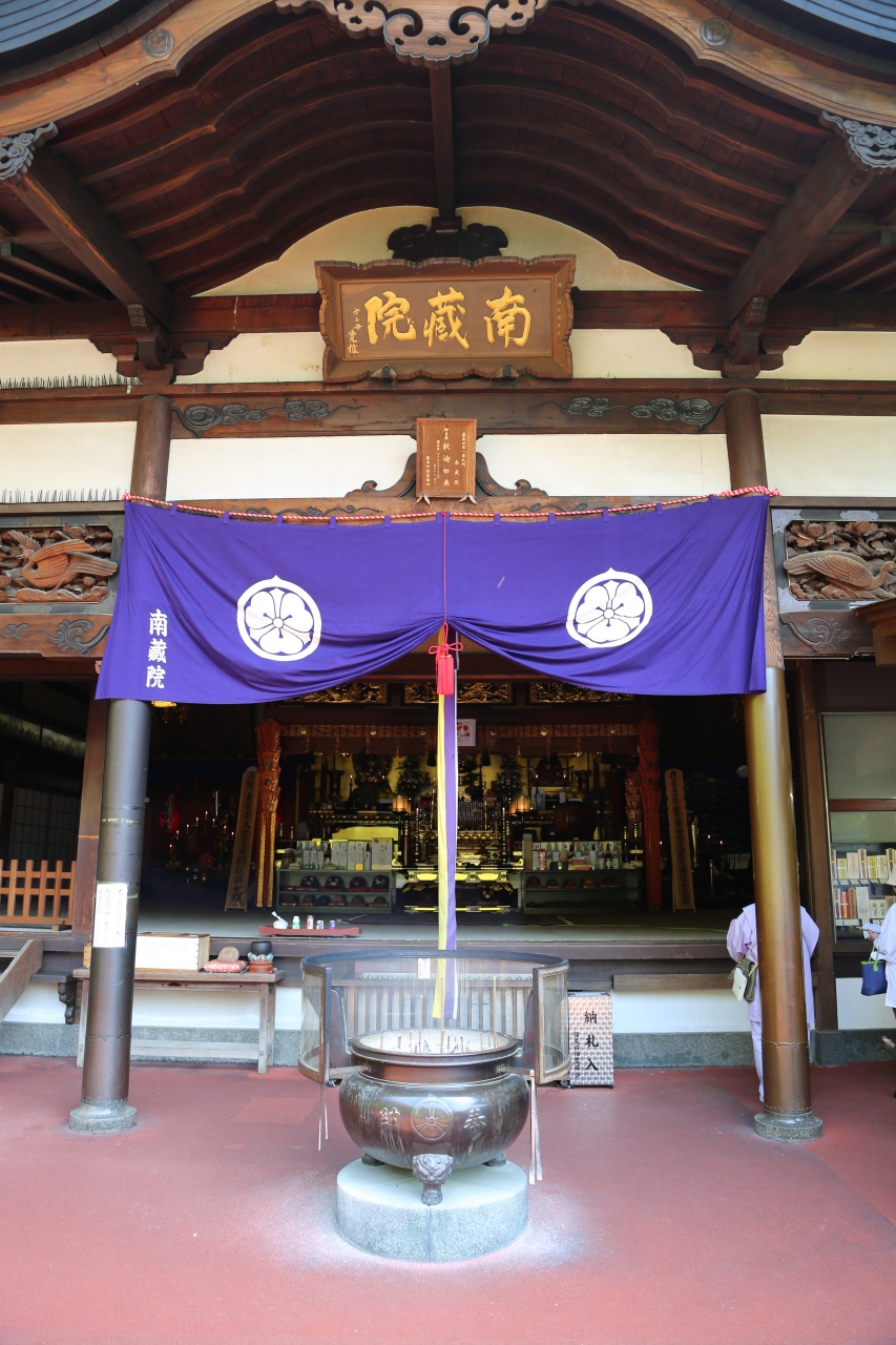 南蔵院は篠栗四国霊場の総本寺で、高野山真言宗の別格本山でもある。明治19年、廃仏毀釈のあおりを受け、県令によって霊場廃棄命令が出されたが、地元の人々の嘆願の結果、明治32年9月に高野山より南蔵院を招致することで霊場の存続が認められた。