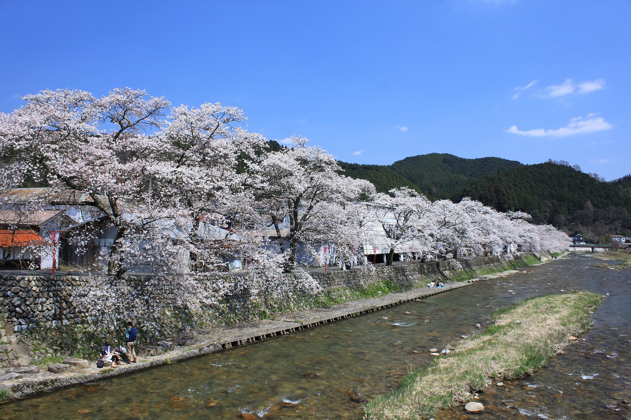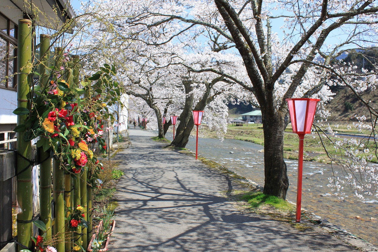 古い街並みが残る、新庄宿のように古い建物は残っていませんでしたが、新庄川の堤防沿いの約600mの間に咲く、約50本の桜並木はとてもきれいでした。