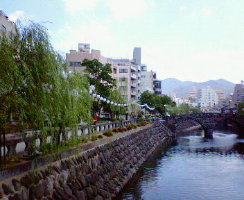 川沿いの古い石造りの柵や涼しげなしだれ柳を横目に、眼鏡橋を見るついでにのんびりと散歩を楽しめます。