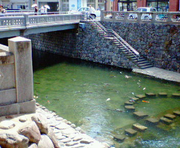 また、近くには川岸に降りれる場所があり、集まる鯉を見て楽しむこともできます。