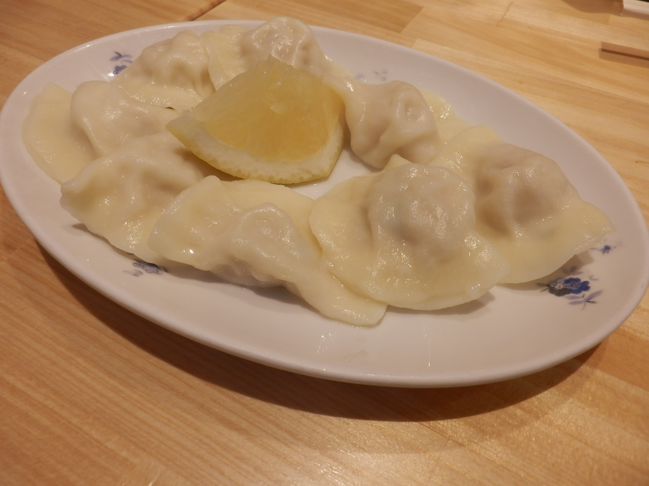 メディアに取り上げられることも多い有名なお店です。お店は2階建てで、1階入口ではテイクアウトもありました。夕食にはまだ早い時間帯に訪れましたが、店内はほぼ満員で、テイクアウトのお客さんもいました。普通の餃子と水餃子を注文しましたが、全く別物で驚きました。水餃子は皮がもちもち。何故かグレープフルーツも付いてきました。普通の餃子は揚げ餃子で、パンのような感じもしました。一人一皿では多すぎるほど、ボリュームがあり、お腹が膨れました。