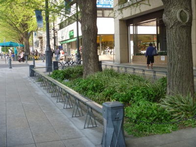 海までまっすぐ伸びる歩道が広く、気持ちの良い散歩道です。ここの銀杏並木も有名。木の下にはベンチがあり、安いカフェもあるので暖かい日は外でボーッとするのも良し。犬の散歩や油絵を描きに来る人もいます。平日の昼時は付近の会社員のためのお弁当屋が出て少し混雑するので景観がイマイチかも。