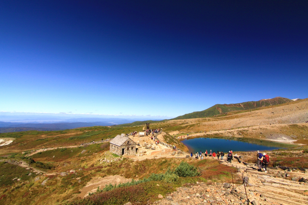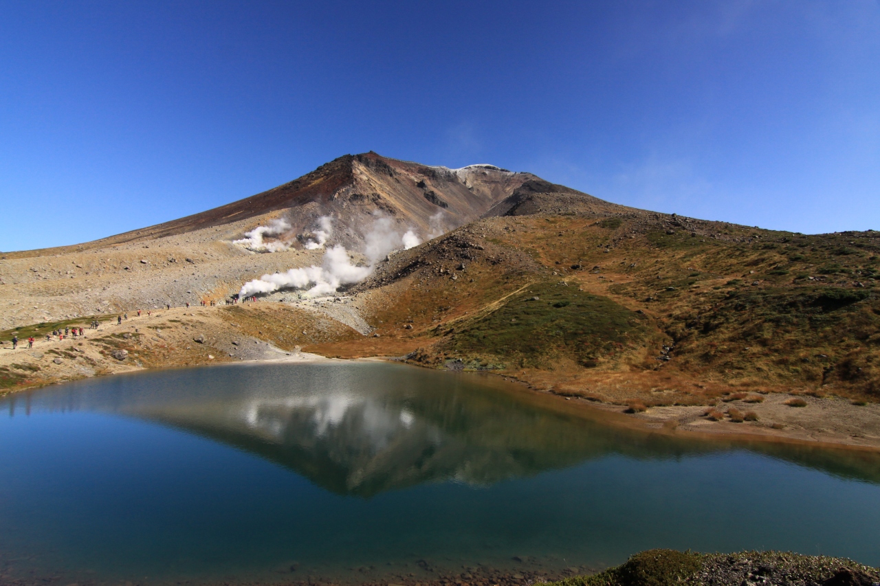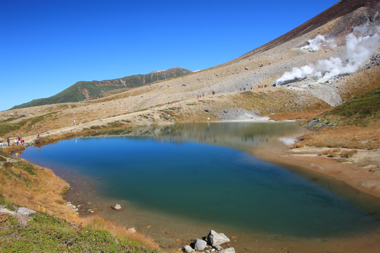 ロープウェイの姿見駅からは20分~30分程度、遊歩道や石ころの道を歩くことになりますが、お天気が良ければ是非近くまで行って旭岳が映った水面を見ていただきたいと思います。