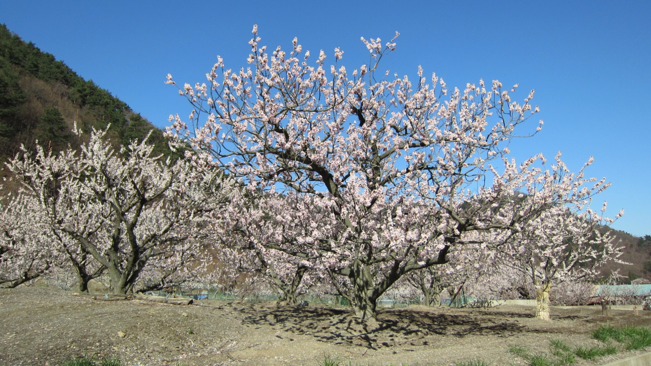 今年は平地は既に散っていましたが山間部は満開で、好天の中、奇麗なあんずの花を見ることができました。