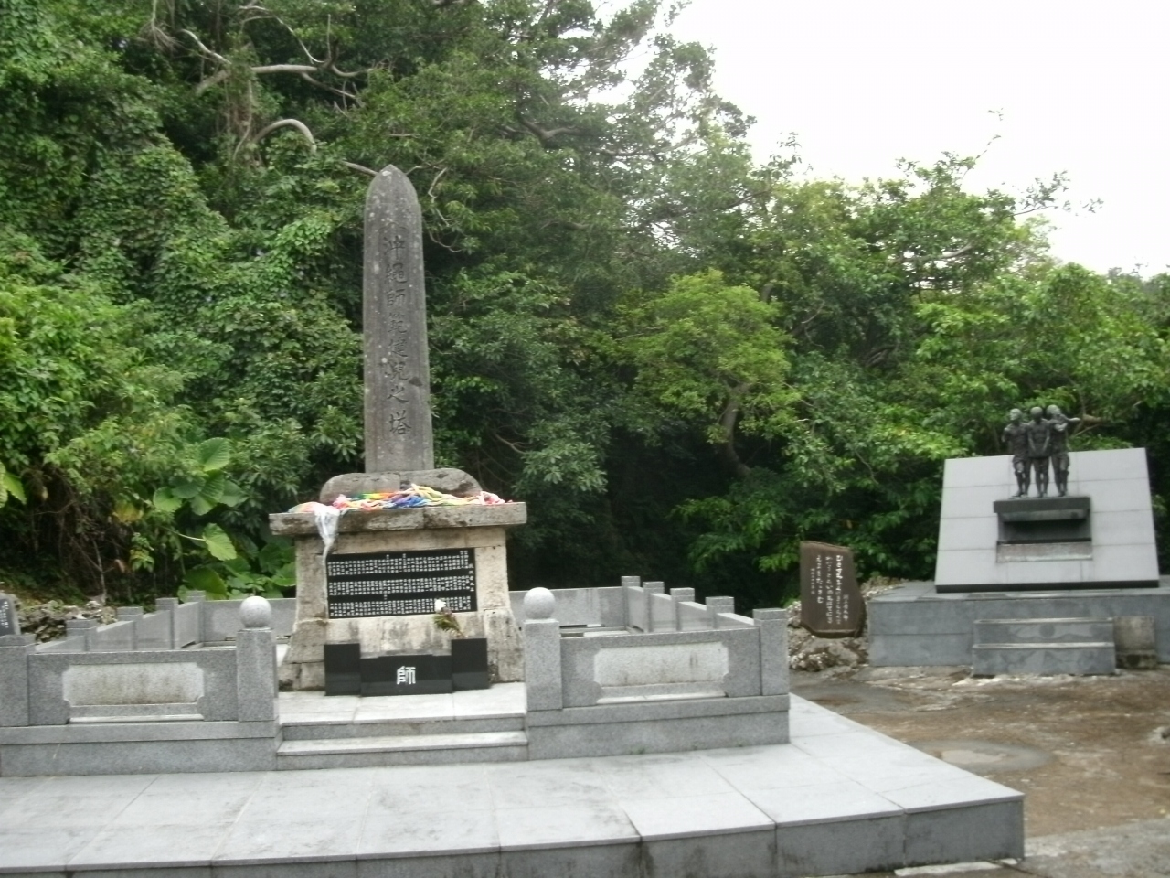 「健児の塔」は、沖縄本島の南部、“糸満平和祈念公園”の中にあります。沖縄師範学校男子部の生徒によって編成された鉄血勤皇隊を祀った碑です。鉄血勤皇隊が南部の断崖絶壁に追い詰められ最期を遂げたところで、生徒・職員307名を合祀しています。当時、皆様がどの様な思いで最期を迎えられたかを考えると、胸に来るものがあります。慰霊と尊崇の念を持って参拝させて頂きました。公園の西の端の方にあるため、駐車場からだとかなり歩くことになります。