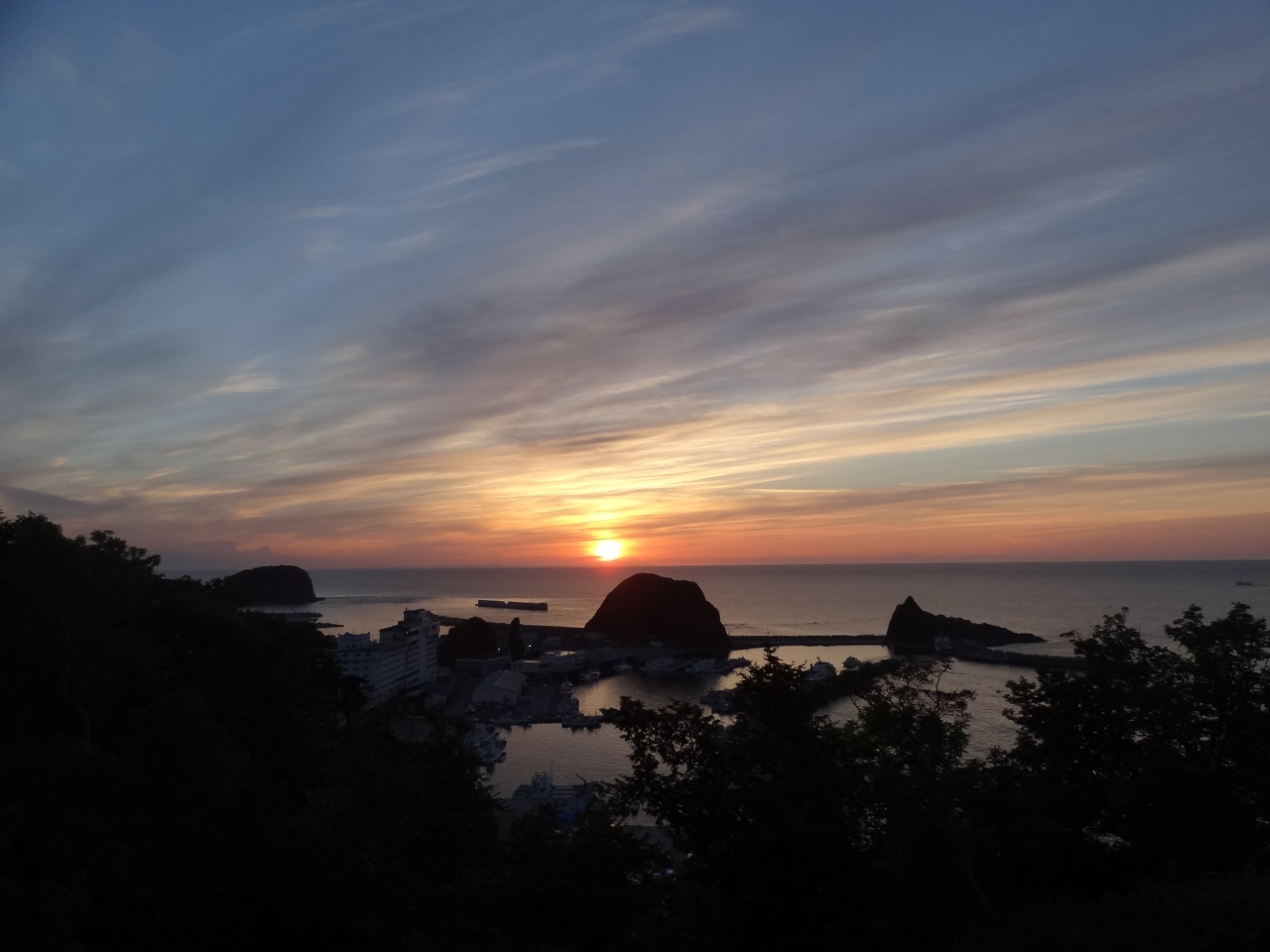ウトロに来たら是非見ておきたいのが、知床八景選出‘ウトロの夕日’。‘夕陽台’は名前の通りサンセットポイントで有名な展望台。国営知床野営場を入り、砂利道の突き当りにあります。ウトロ港・オロンコ岩が眼下に、眺めは素晴らしい。でも夕暮れ時は人がいっぱい、展望台自体も小さく‥ここではゆっくり夕陽を見ることはできませんでした。