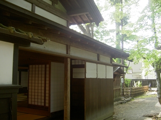 広い屋敷で、道沿いには武者窓とよばれる、のぞき窓のついた造りになっています。